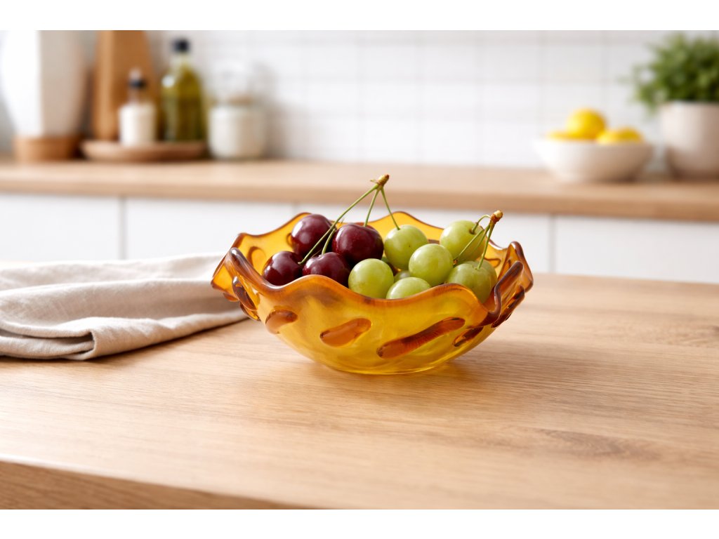 Průzračně zlatavá barva misky připomíná med svou barvou i zaoblenými měkkými konturami. Ideální pro ranní kaši nebo jen tak pro potěchu oka
