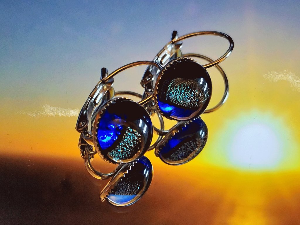 Nerezové náušnice na uzavírání s očky z dichroického skla, průměr cca 5mm