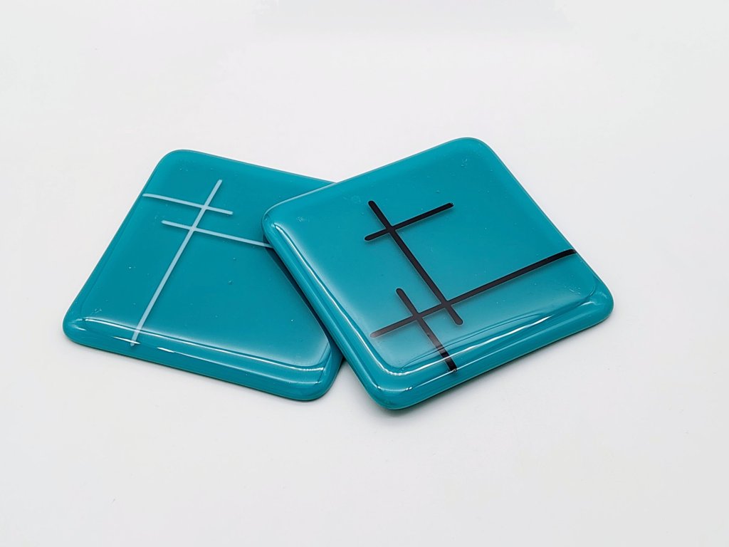 Sada podtácků se skládá ze dvou kusů o velikosti 10x10cm. Fusingové sklo je nejen dekorativní, ale také velmi odolné a funkční. Snadno se udržuje a bezpečně tak ochrání váš nábytek.